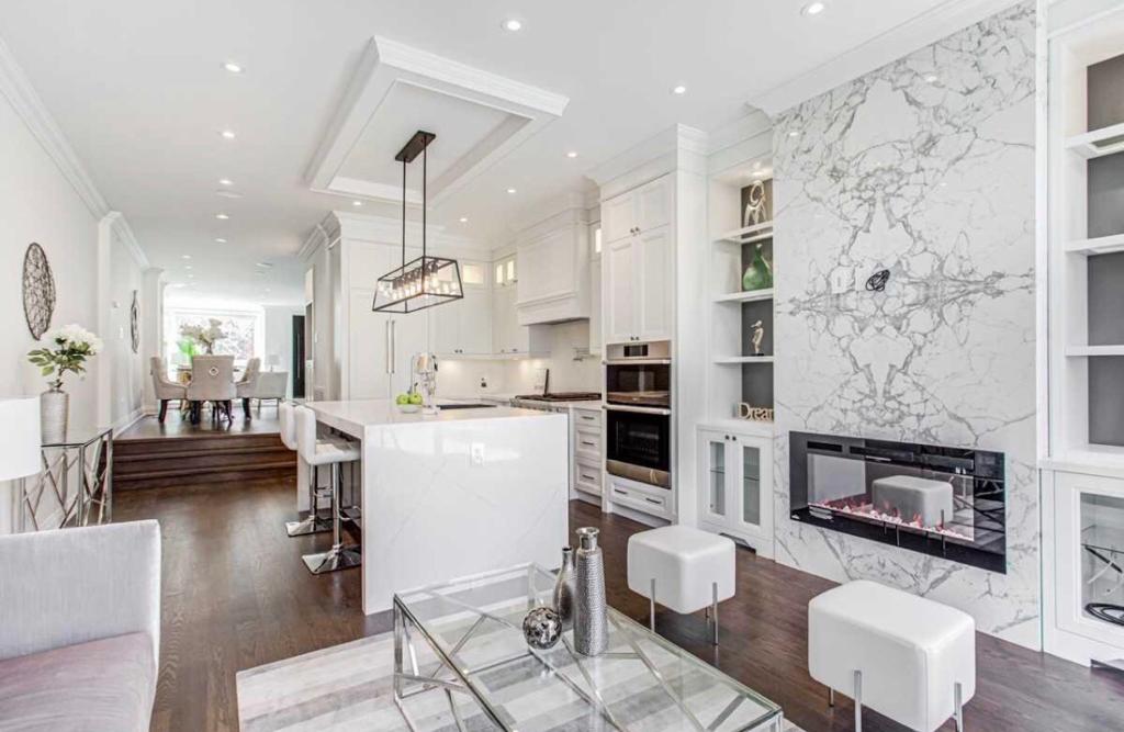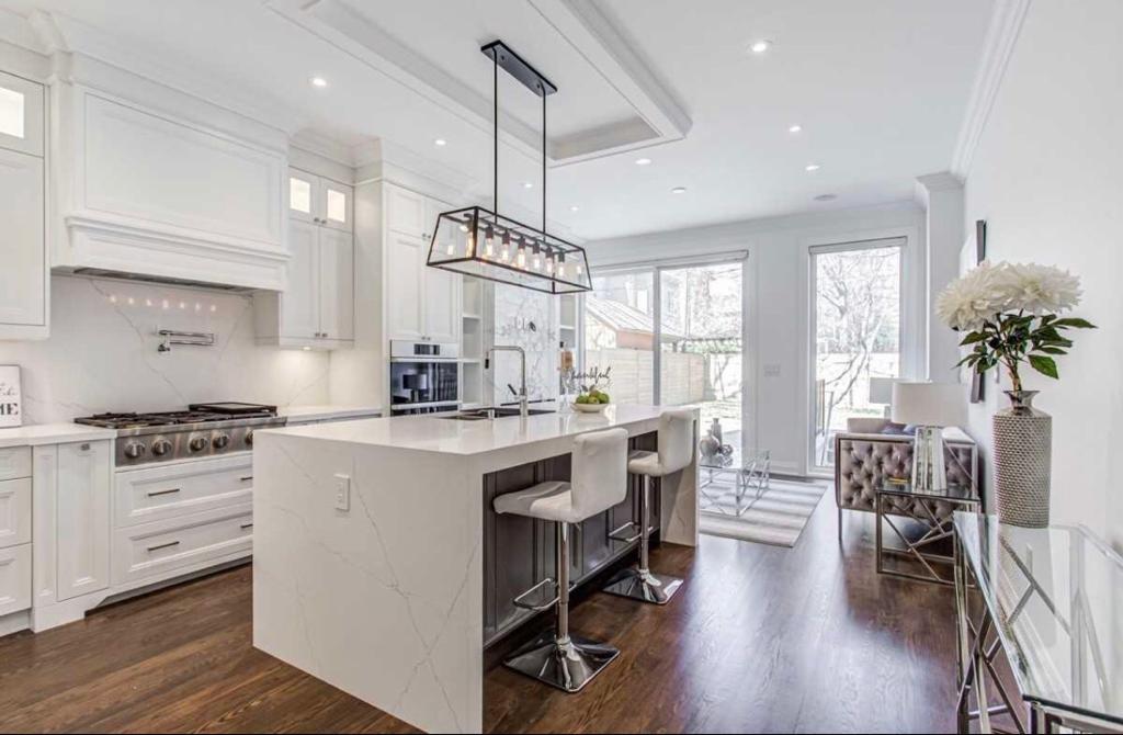 Key elements of the existing structure were preserved to blend the old with the new. The front façade was updated to reflect current design trends while maintaining the existing hip roof line. The design features an open concept floorplan including transition risers on the main level, which uniquely define each space. The dwelling also features a lowered basement providing recreational space with potential for a conversion to a rental unit if desired.